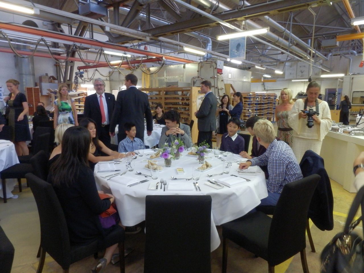 夜: スタインウェイ工場内でディナー (通常ありえないところでの夕食会!)