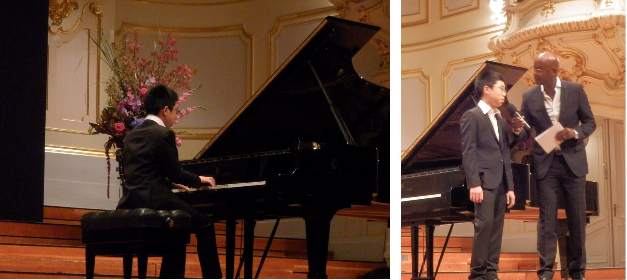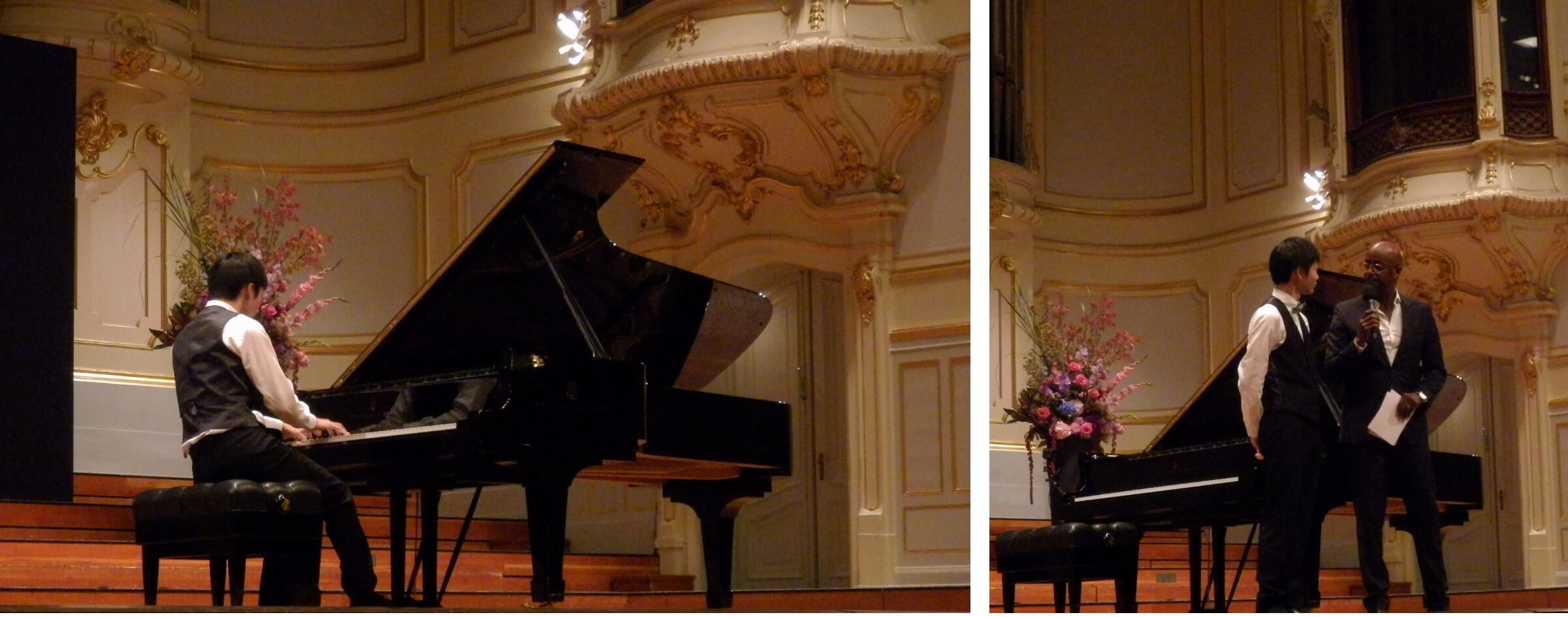 スイス代表の松崎さんは後半の4番目に登場、ショパンのバラード2番を表現力豊かに熱演。高い集中力をもってダイナミックに弾ききった後は、得意のフランス語で司会者とのトークで盛り上がりました。